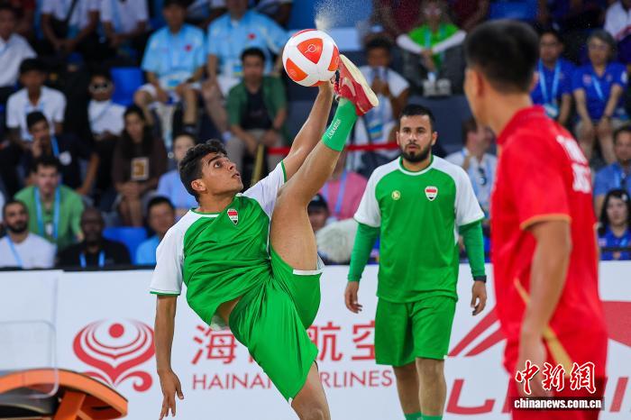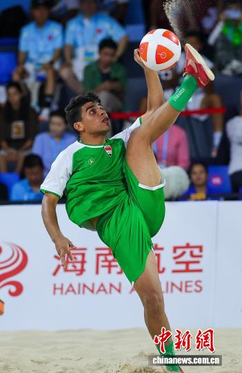 图为伊推克选脚阿卜杜勒推赫曼·艾哈迈德·推迪正在角逐中打球。中新社记者 骆云飞 摄