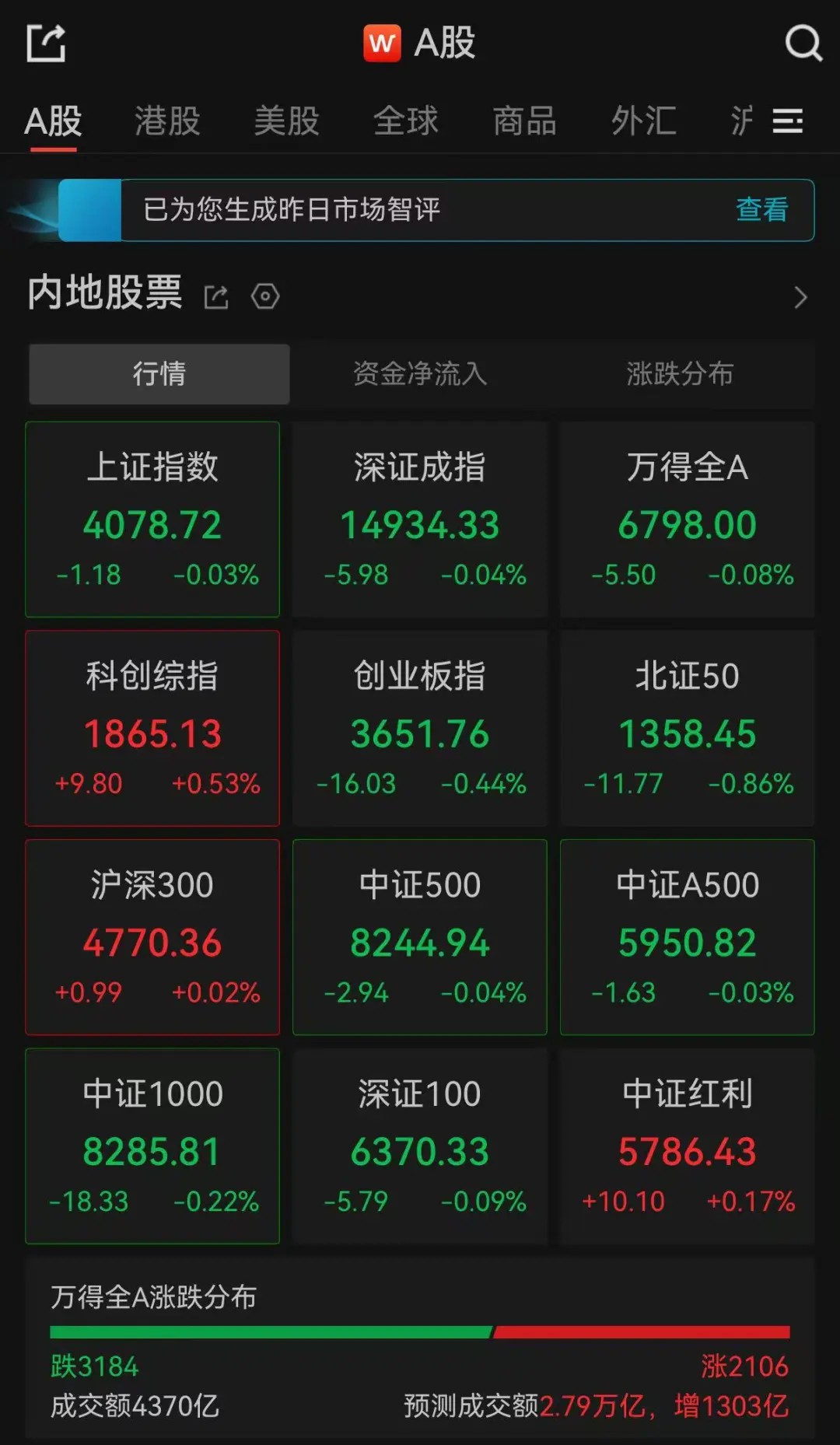27日,A股3年夜指数启盘涨跌没有1,随即普遍翻绿。停止收稿,上证指数跌0.03%,深证成指跌0.04%,创业板指跌0.44%。齐市超3100只个股飘绿。